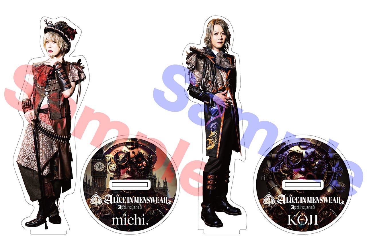 かねてよりリクエストの多かったアクリルスタンドが満を持しての登場です。ALICE IN MENSWEAR始動時の1st衣装にて、michi.とKOJIの2体セットとなっております。